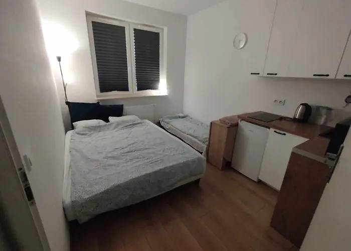 Erleben Sie den ultimativen Komfort in der Küche der Apartments, die mit einem Wasserkocher, einem Kühlschrank und Küchenutensilien ausgestattet ist. Die Ferienwohnung Studio Z Rozkladana Sofa liegt nur wenige Schritte entfernt vom Bahnhof Warszawa Praga.